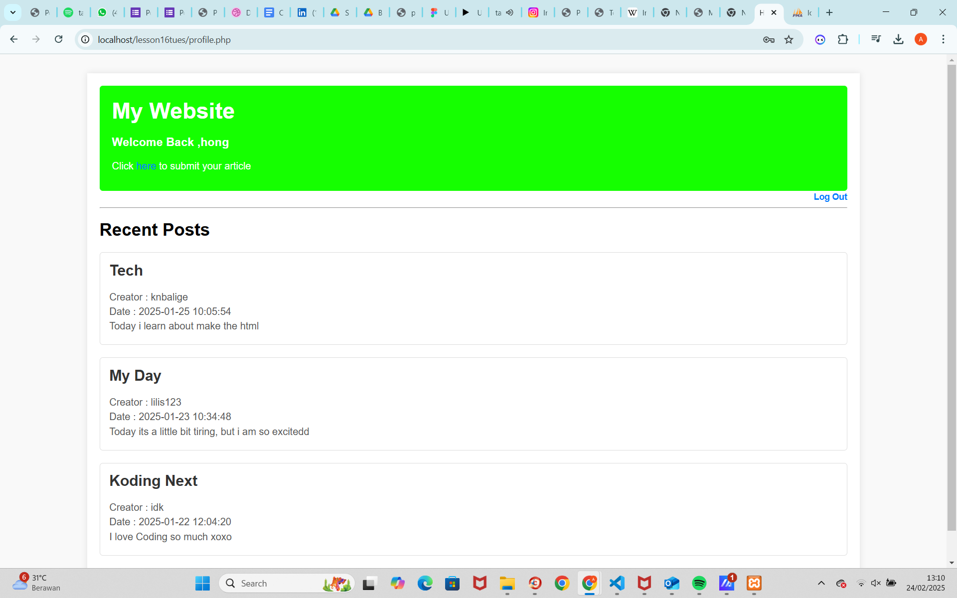 Create interactive student blog use Mysql, PHP, HTML, and CSS